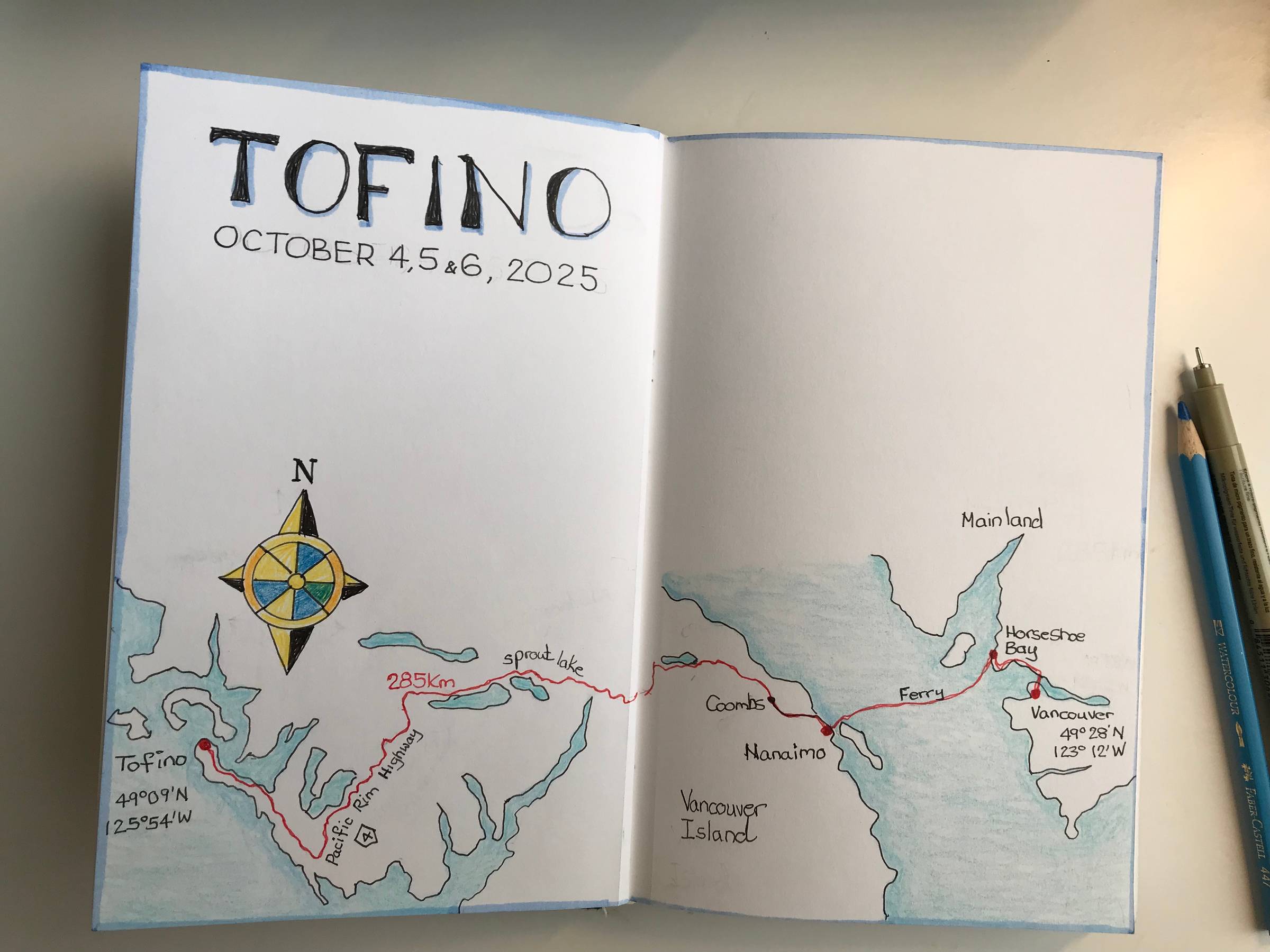 This time I’m opening my travel art sketchbook from a weekend getaway which I took in October 2025 to Tofino.